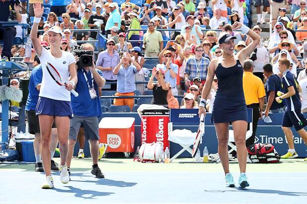 Россиянка Елена Веснина разместила в своём «твиттере» фото после победы над японкой Кимико Датэ-Крумм и чешкой Барборой Заглавовой-Стрыцовой в полуфинале Открытого чемпионата США в парном разряде. Елена в паре со своей соотечественницей Екатериной Макаровой победила со счётом 7:5, 6:3.